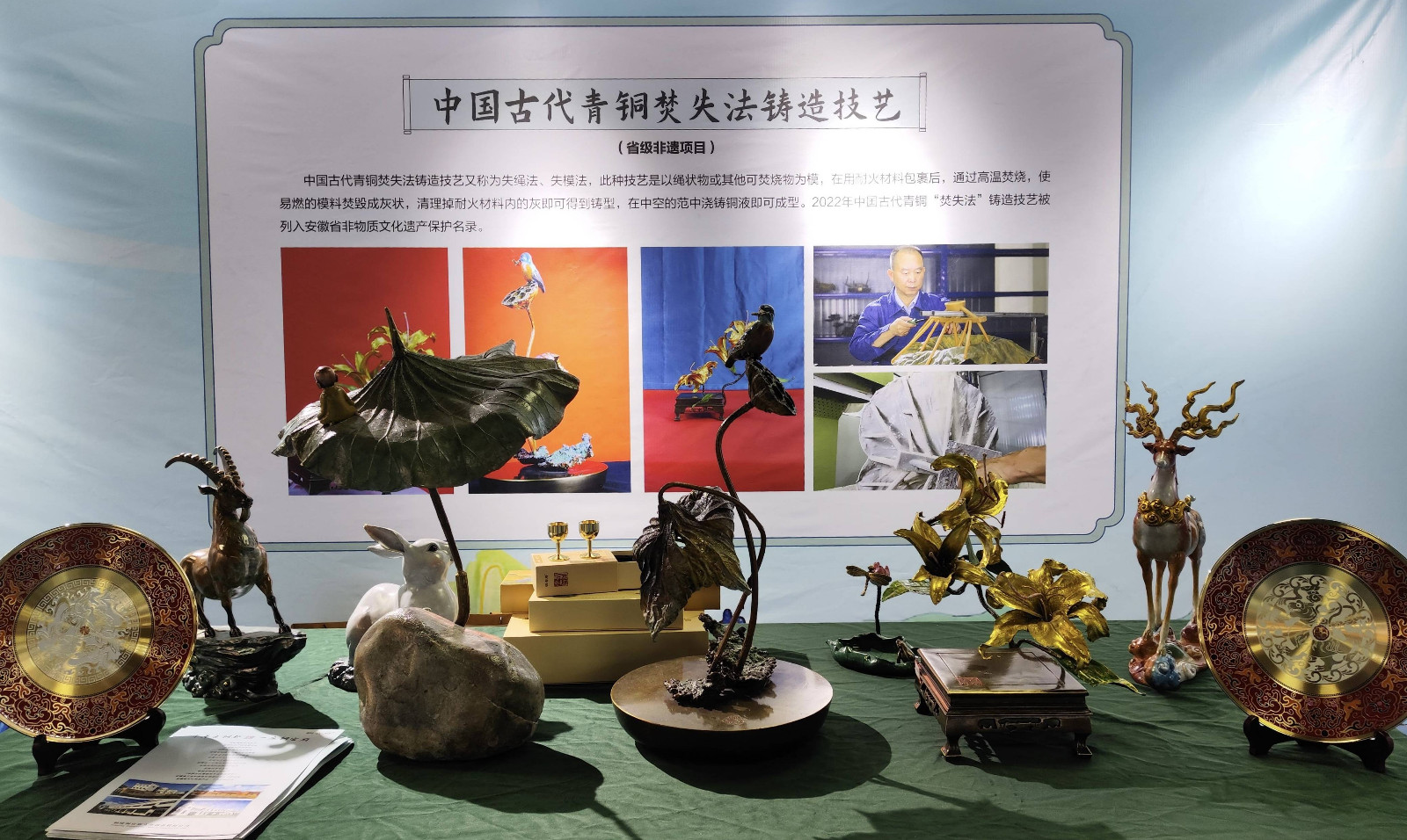 11月22日,以“皖風徽韻·共享瑰寶”為主題的安徽省非物質(zhì)文化遺產(chǎn)傳統(tǒng)技藝大展在蚌埠市舉行。我公司的省級非遺項目——中國古代青銅焚失法鑄造技藝亮相大展?;顒蝇F(xiàn)場,銅陵文化館館長、銅陵市非物質(zhì)文化遺產(chǎn)保護中心主任陳建平向安徽省非遺保護中心主任宋磊、安徽省文化和旅游廳非遺處一級調(diào)研員彭正闊一行和現(xiàn)場觀眾詳細介紹了焚失法非遺技藝以及系列作品。焚失法鑄造技藝穿越千年,以其獨特的工藝和別具一格的藝術(shù)風格完成了由實用技藝到藝術(shù)創(chuàng)作的轉(zhuǎn)型,展示了非遺傳承人的智慧,贏得了大家的一致好評。安徽老字號“銅官府”作為非遺傳承的重要力量,將繼續(xù)堅持守正創(chuàng)新,為傳承發(fā)展非遺技藝和弘揚傳統(tǒng)文化續(xù)寫新篇章。
